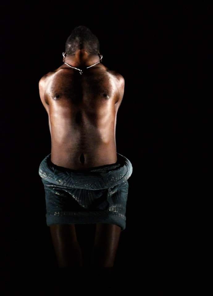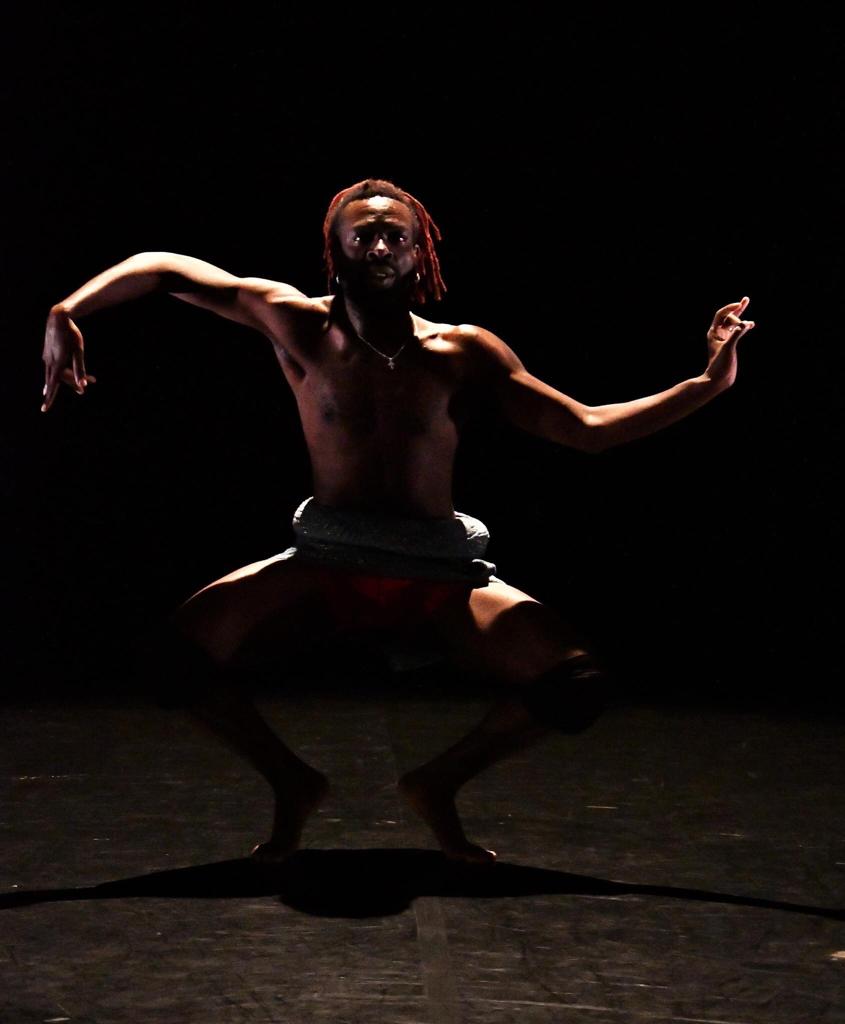 son mouvement de son histoire. Le mouvement intuitif animal et primitif deviendra son échappatoire et son refuge, une façon d’exorciser ses démons, de danser ses émotions. Ce sera lorsqu’il s’enfuira du camp rebelle qu’il commencera sa formation de danseur. Devenu “Le fou qui danse” c’est sa rencontre avec le chorégraphe Chrysogone première génération des chorégraphes du Congo Brazzaville qui lui ouvrira les portes des ballets Nationaux du Congo.