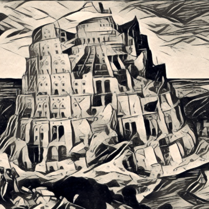 Le mythe de la tour de Babel: Nemerod (roi-chasseur) régnant sur les descendants de Noé eu l’idée de construire à Babel (Babylone) une tour assez haute pour que son sommet atteigne le ciel (c’est à dire le trône de dieu) mais Dieu fit échec à cette entreprise en introduisant la confusion (la diversité des langues). En multipliant les langues, Dieu annihile chez eux toutes ambitions de dépassement.
