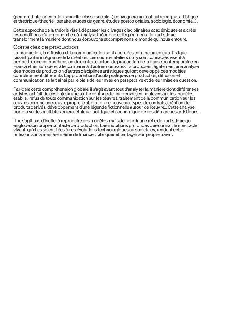 Par le biais d’ateliers, de classes, de pratiques physiques, chorégraphiques et théoriques, de créations de spectacles et de collaborations spécifiques avec des institutions partenaires, l’école propose des outils multiples pour que chaque étudiant·e fasse son chemin et soit ainsi en mesure de contribuer à la vivacité et à la diversité de la danse contemporaine de demain.