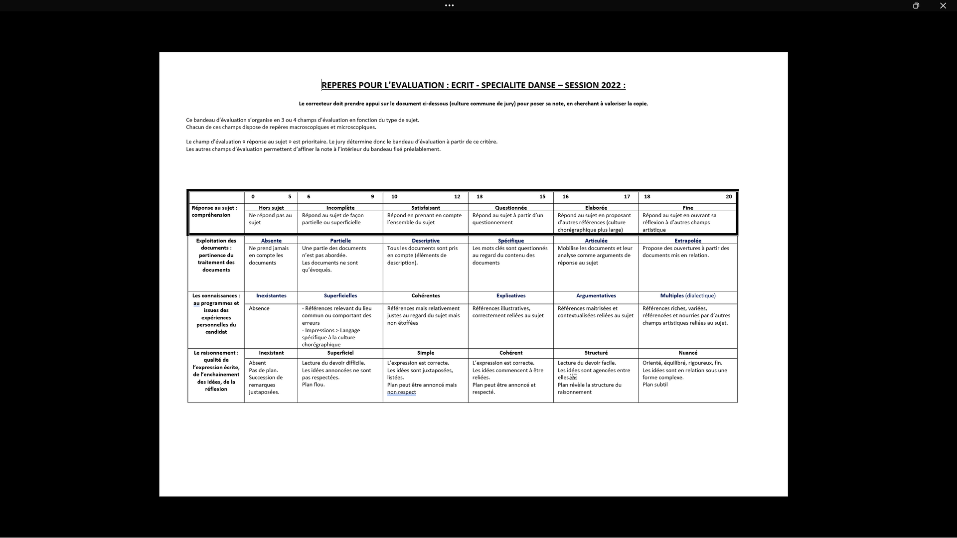 Grilles d’évaluation – Épreuves de spécialité danse : écrits
