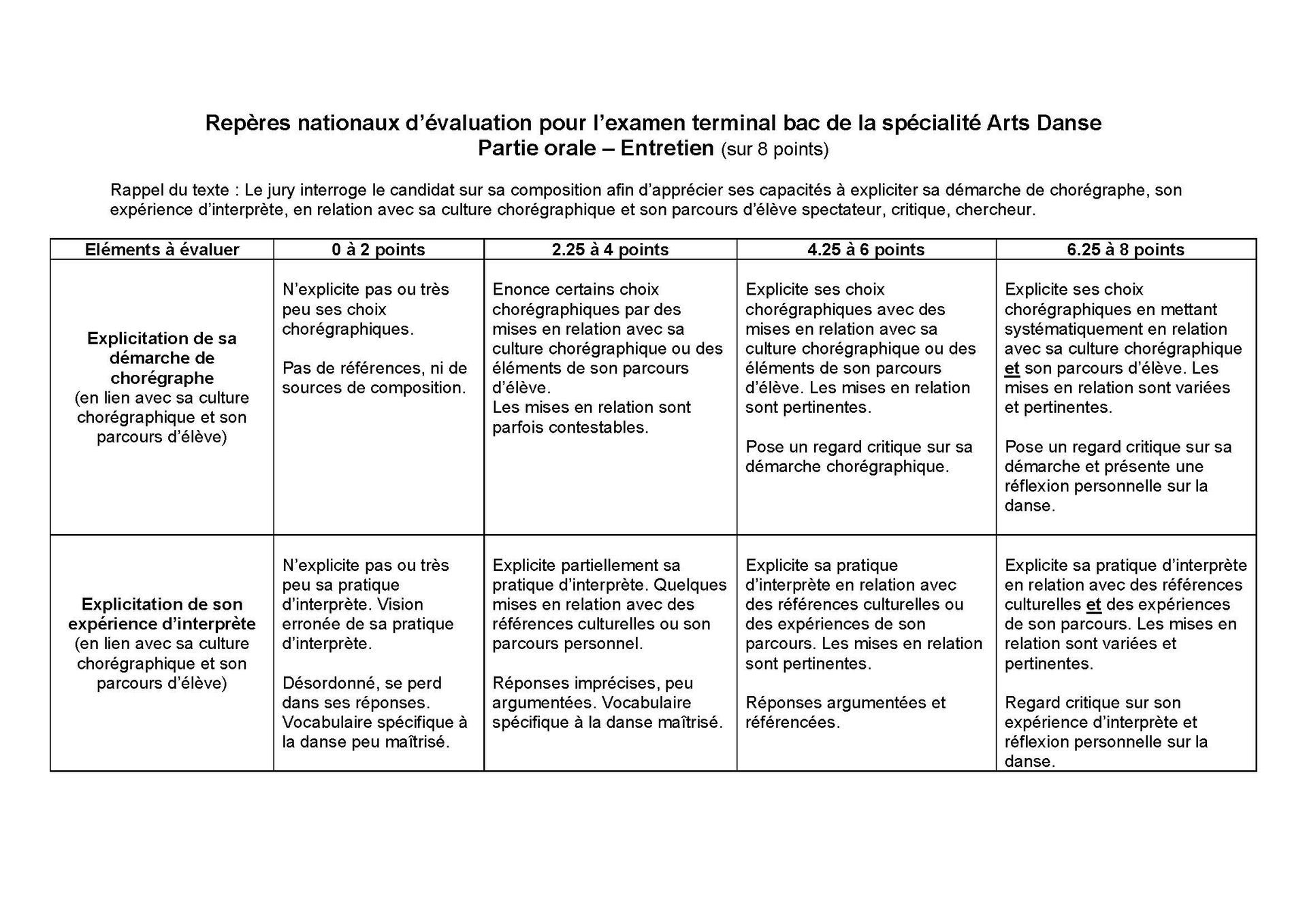 Grilles d’évaluation – Épreuves de spécialité danse : pratiques et entretiens