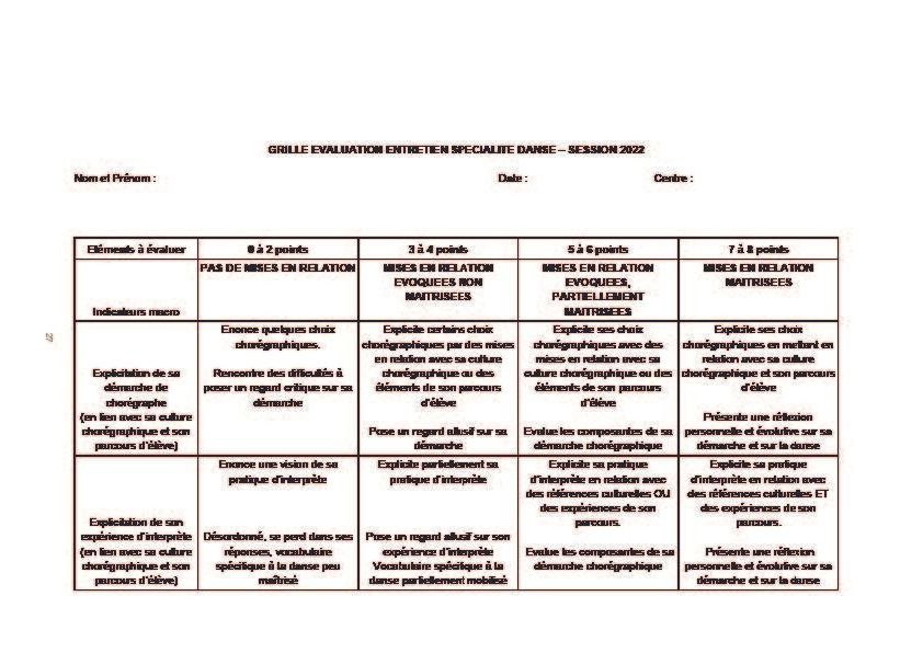Évaluer la capacité à expliciter la démarche de création, l’expérience d’interprétation, la culture chorégraphique et le parcours critique.